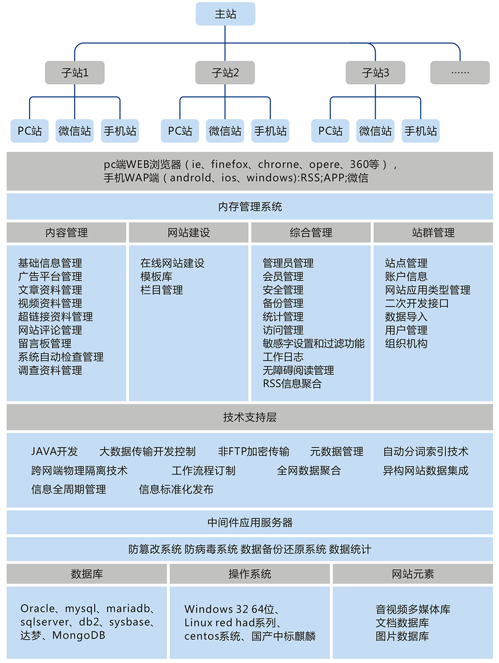 維網(wǎng)VCMS網(wǎng)站群管理平臺(tái)可以協(xié)助政府、高校、傳媒以及大型企業(yè)快速的管理和建設(shè)各級(jí)部門的子站點(diǎn),完全可視化拖拽方式制作和維護(hù),集策劃、設(shè)計(jì)和維護(hù)于一體,通過數(shù)據(jù)接口可聚合多系統(tǒng)內(nèi)容。編輯就能快速做專題,無需設(shè)計(jì)和技術(shù)參與,制作周期短、成本低、效果好。站群系統(tǒng)主要面向政府、學(xué)校、集團(tuán)。模式為"主站+分站”的模式,每個(gè)分站均屬獨(dú)立的系統(tǒng)。使用者可以便捷和集中式的對(duì)信息進(jìn)行管控,從根本上解決了網(wǎng)站維護(hù)難,建設(shè)難,管理難等諸多網(wǎng)站建設(shè)與服務(wù)的問題。