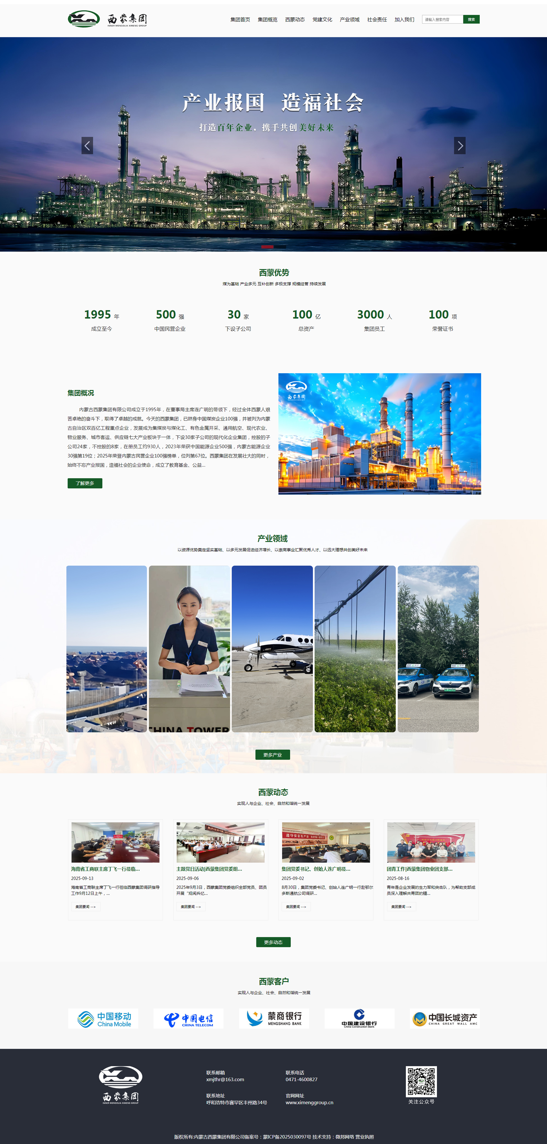 內(nèi)蒙古西蒙集團有限公司成立于1995年,在董事局主席連廣明的帶領下,經(jīng)過全體西蒙人艱苦卓絕的奮斗下,取得了豐碩的成就。今天的西蒙集團,已躋身中國煤炭企業(yè)100強,并被列為內(nèi)蒙古自治區(qū)雙百億工程重點企業(yè),發(fā)展成為集煤炭與煤化工、有色金屬開采、通用航空、現(xiàn)代農(nóng)業(yè)、物業(yè)服務、城市客運、供應鏈七大產(chǎn)業(yè)板塊于一體,下設30家子公司的現(xiàn)代化企業(yè)集團,控股的子公司24家,不控股的8家,在冊員工約930人,2023年榮獲中國能源企業(yè)500強,內(nèi)蒙古能源企業(yè)30強第19位;